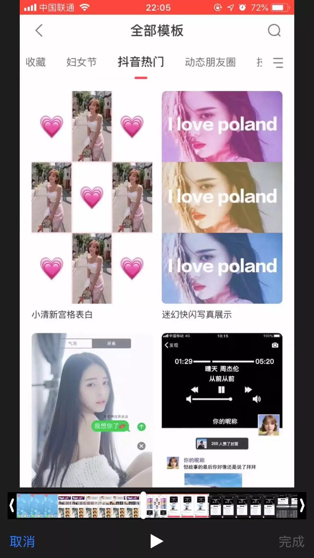 3、找到微信朋友圈背景视频模板。
