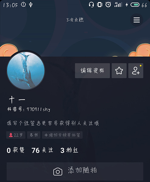1、打开抖音,点击进入“我”个人页面,点击右上角的三横标记