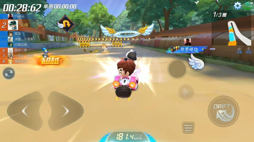 如果你在道具赛中不是第一名,那么前面的车手肯定是有天使或盾牌这两个防御道具的,所以我们要做的就是骗出他们的天使,先用一个不是很重要的攻击或干扰道具骗出天使后,再用带有硬控的攻击道具效果会非常好哦。