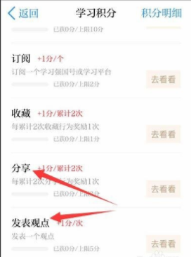 7、分享和表达观点这2项,分享可以分享到学习软件的任意好友,发表观点的字数要超过5个字,发表的评论觉的不好也可以删除的。