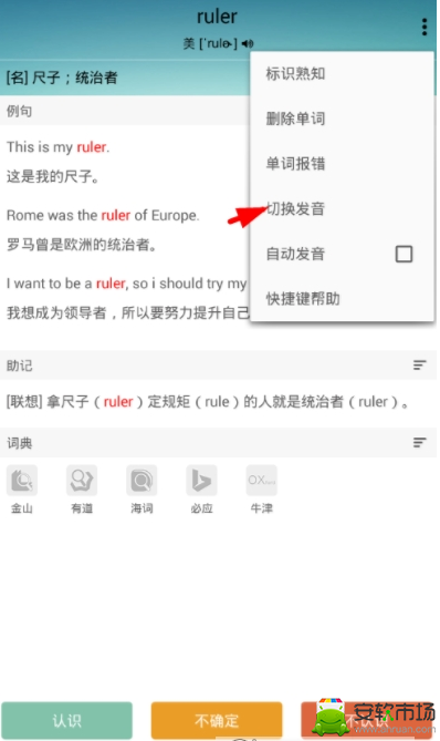 3、最后我们需要点击列表中的【切换发音】功能,做到这里就可以将单词切换为美音了。