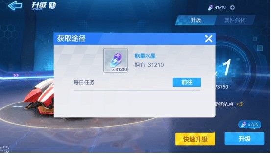 当然强化离不开材料的支持,在《跑跑卡丁车官方竞速版》手游中能量水晶是唯一一种用来强化赛车的材料(车子每升一级便会获得一定数量的强化点),由于升级后赠送的强化点不是很多,想要强化更多属性,各位跑跑er一定要时刻留意任务积攒能量水晶!