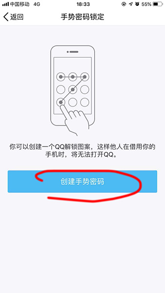 5、最后点击创建爱你手势密码,然后设置完成即可。
