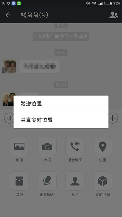 2、之后出现“发送位置”和“共享实时位置”,选择“共享实时位置”