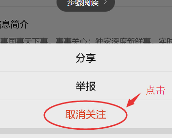 4、弹出框中点击“取消关注”。
