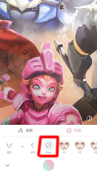 2、当大家发现补妆的效果并不好的时候,可以直接选择补妆工具栏中的“无”即可。