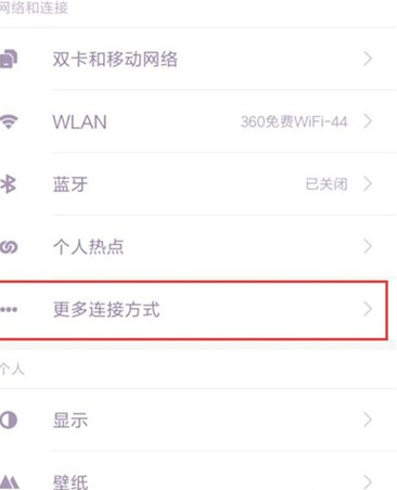 第二步:点击进入设置选项之后,找到【更多连接方式】选项,点击打开
