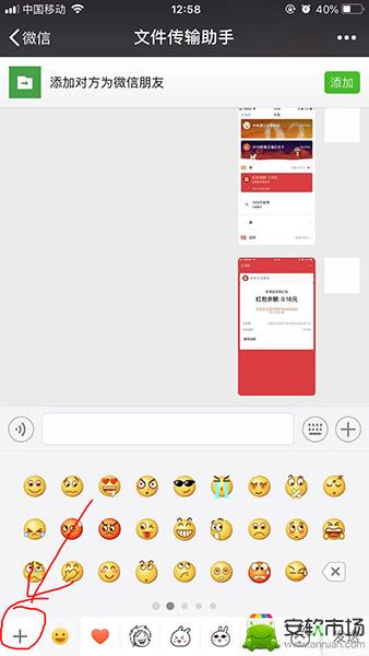 1、长按图片保存到手机中,然后打开任意一个聊天框,点击表情然后再点击左下角的【+】号