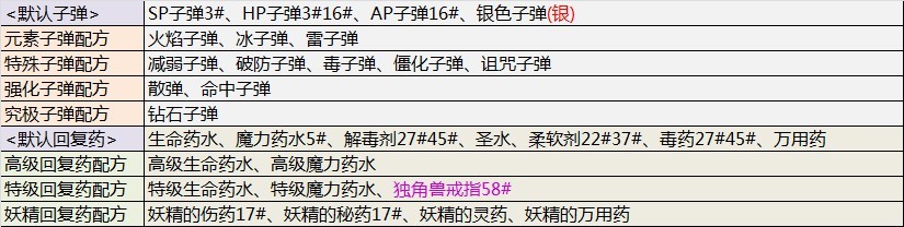 2、三张表纵横坐标都是依照游戏中物品栏里的顺序排的,但并不符合实际游戏流程中配方和食谱的入手顺序,尤其是拿到二段跳后游戏的攻略路线有较大自由度。