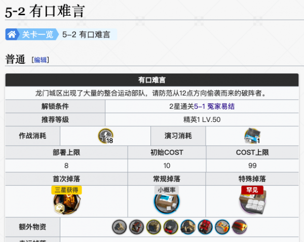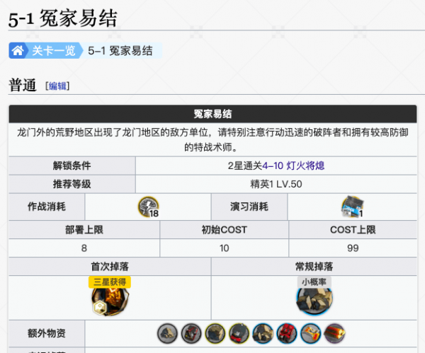 描述:龙门外的荒野地区出现了龙门地区的敌方单位,请特别注意行动迅速的破阵者和拥有较高防御的特战术师。