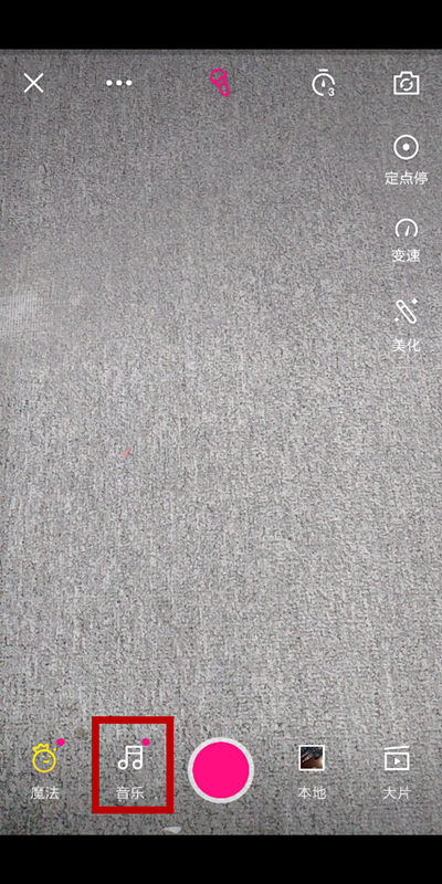 1、手机中打开微视准备拍摄视频界面,点击界面底部的【音乐】选项