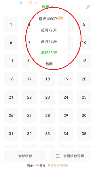 3、此外你还能对缓存的视频清晰度进行一个选择!
