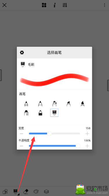 3、然后选择画笔工具,选择相应的画笔型号,调整画笔的宽度以及不透明度等;