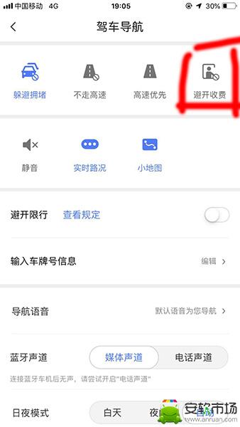 4、之后就可以在栏目中看到“避开收费”,然后点击把灰色变成蓝色就可以了。