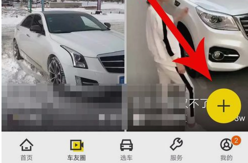1、懂车帝中点击“车友圈”,然后点击右下角的“+”。