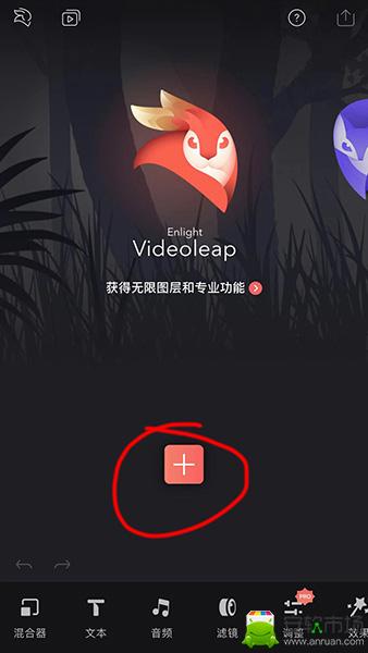 1、以Videoleap软件为例,打开软件点击【+】号导入视频第一段视频