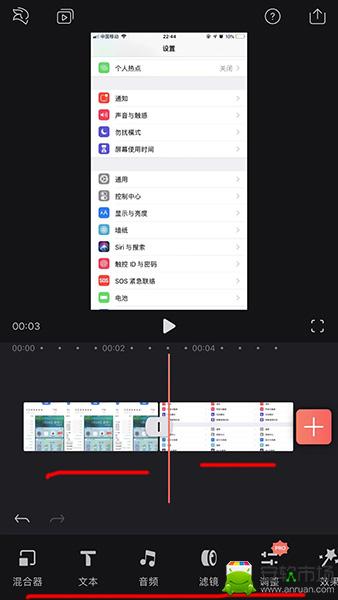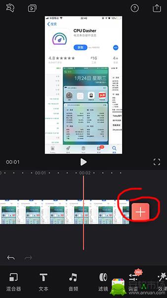 3、如果你还想继续导入的话就继续选择【+】号即可。导入完成之后那么就可以开始添加特效以及剪切了。