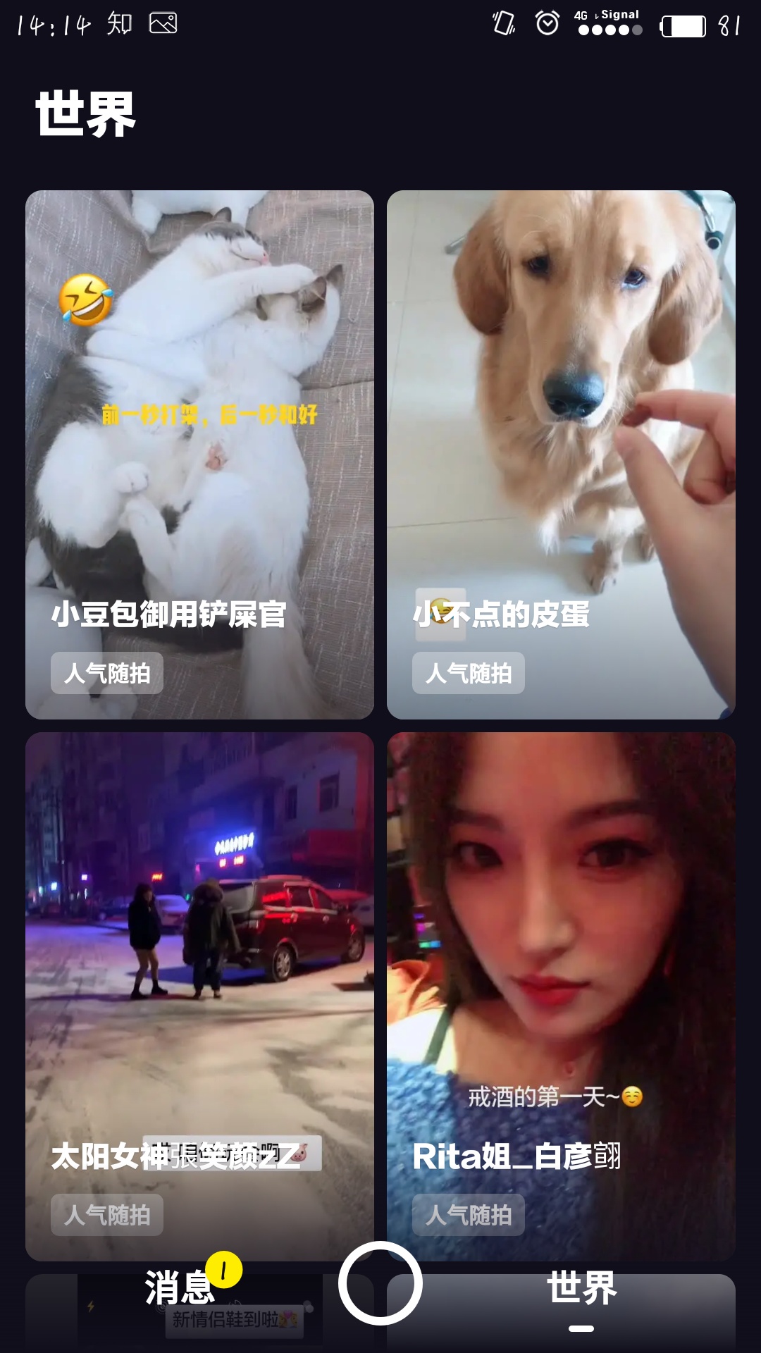 4、点击下方的圆圈,即可进行短视频拍摄。