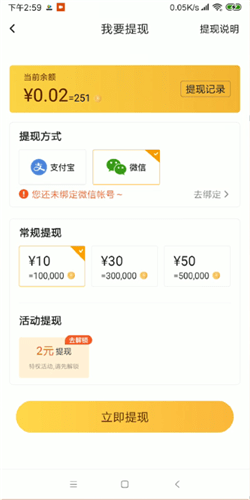 2、在我们点击了提现之后我们就可以选择微信了。