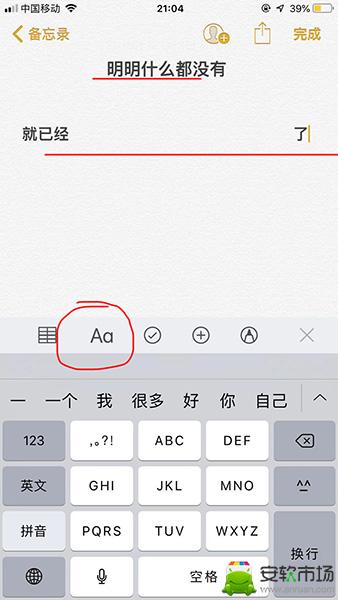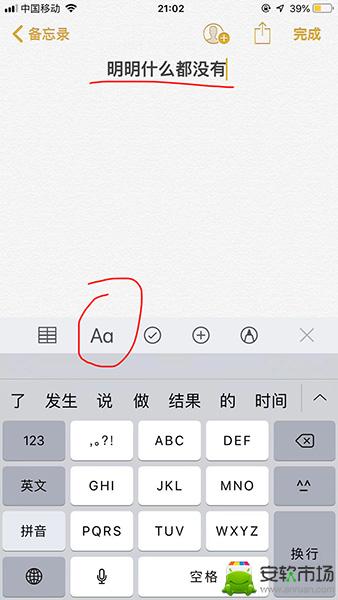 2、接着输入文字,然后给字体添加样式,点击工具栏中的【Aa】;