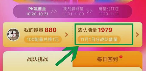 1、首先进入集能量的首页,然后点击【战队能量】;