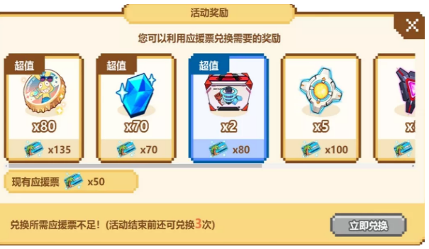 舰长可以使用应援票兑换水晶、进化材料自选箱、吼姆金盖等丰富奖励!