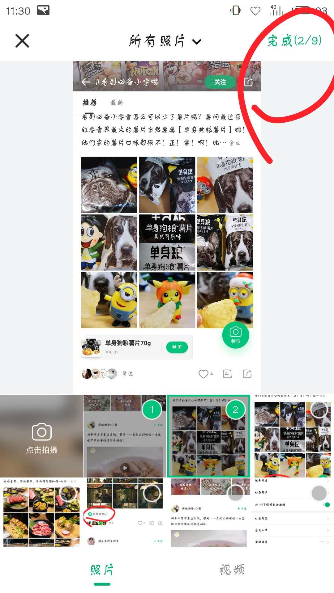 2、在相册中选择图片,或者进行拍摄。点击完成。