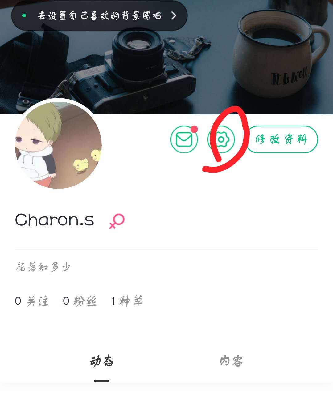 2、进入“我的”页面后,点击“设置”图标,如图。