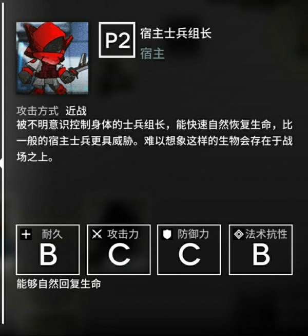 被不明意识控制身体的士兵组长,能快速自然恢复生命。
