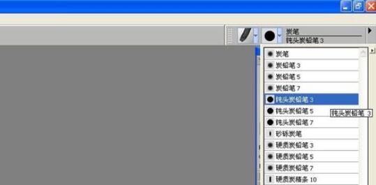 然后,更改画笔的笔触样式,选择钝头碳笔样式的画笔,如下图所示。