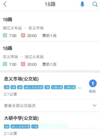 比如查找18路,就可以看到公交时刻点、票价、站台