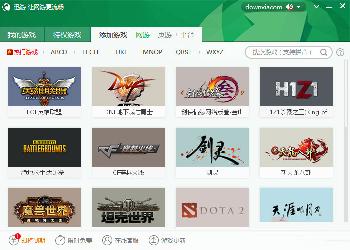 1、打开迅游网游加速器主页面,点击【添加游戏】,输入游戏名称