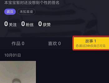 第六步回到个人界面,点击底部我,可以看到已经发布了一个故事,只24h对外展示,然后就属于自己的故事视频了,如下图所示: