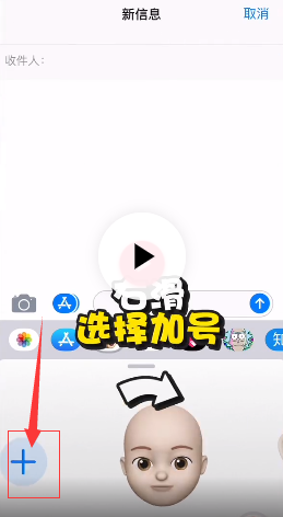 2、创建一个新的信息,点击下面的小后再图标