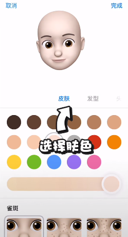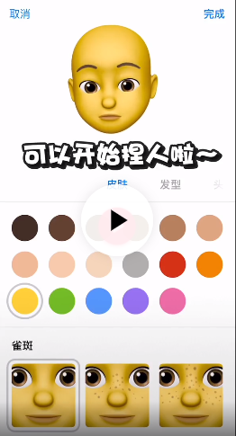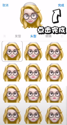 4、剩下的就是自己创建想要的拟我表情,肤色、发型、眼镜等各部位都可以,然后点击完成