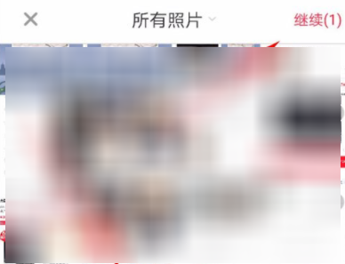 1.打开软件,发布笔记,在打开的图库中选择一张图片,接着点击页面右上角的“继续”按钮。