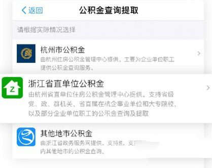 2. 点击“公积金查询”,选择“浙江省直单位公积金”;