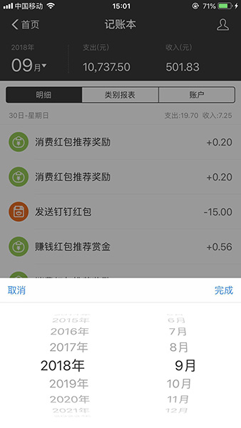 3、想要查看具体时间的明细可以点击左上角的月份,在这里就可以查看自己想要的日子了。