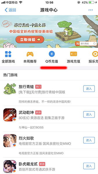 3、找到并点击【Q币充值】