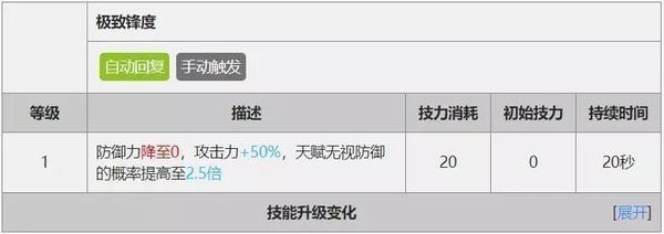 精一时,开启二技能,理论每4刀就有一刀无视敌人防御,精二则更是达到恐怖的每2刀一次