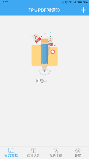 2、轻触打开轻快PDF阅读器,它会自动搜索手机中本地的PDF文件,搜索完毕后,在“我的文档”中我们会看到手机上所有的PDF文件。
