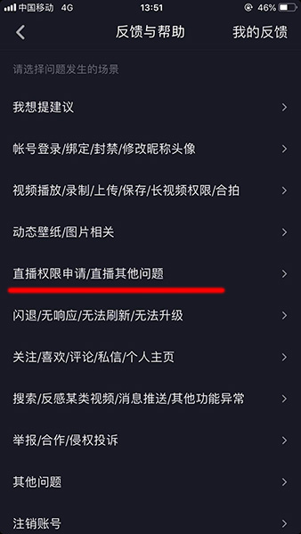 3、接着再进入【直播权限申请/直播其他问题】选项