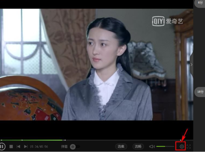 3、点击播放界面右下角的“设置”按钮(若没有设置或菜单选项,将鼠标移动至播放画面的底部)。