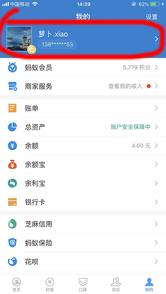 1、进入支付宝点击【我的】,然后点击上面的个人主页,如下图所示