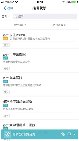 4、这这里需要选择自己需要挂号的医院,然后点击进入