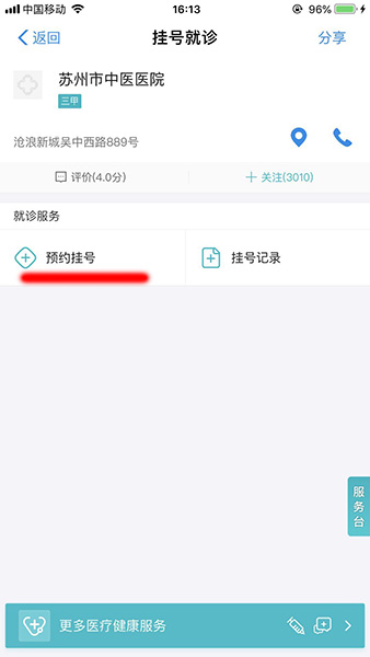 5、这里就可以点击下方的【预约挂号】服务了,剩下的跟着系统步骤来就行了。