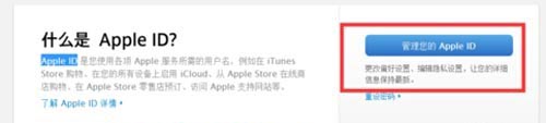3、在你进入管理页面后,你需要去找到管理您的 Apple ID的选项。