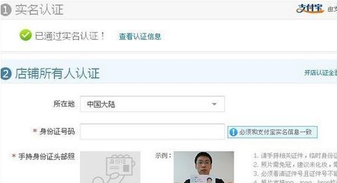 进入“卖家中心”页面,点击“我要开店”或“免费开店”,即可开始开店认证,开店认证包括支付宝实名认证及上传真实个人照片(身份信息认证)两部分。