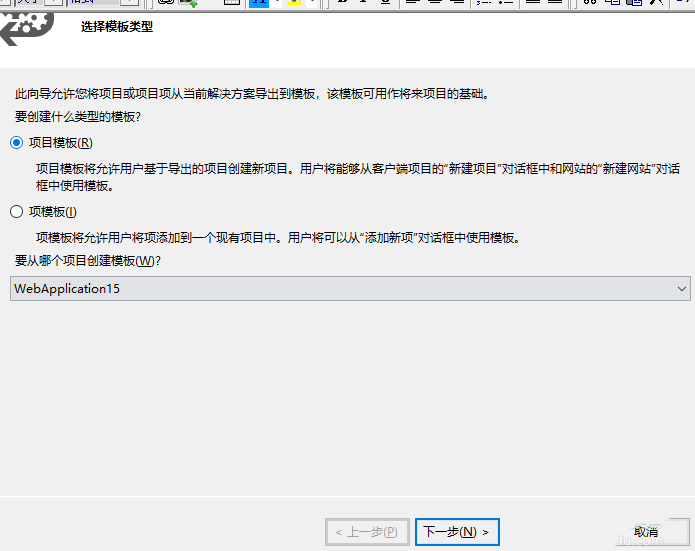 3、这个时候会弹出导出模板向导的界面,如下图所示,我们选择第一个项目模板