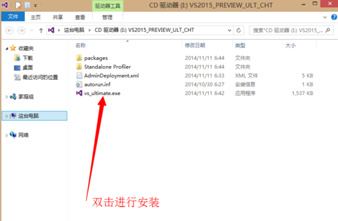 打开镜像文件,双击vs_ultimate.exe进行安装